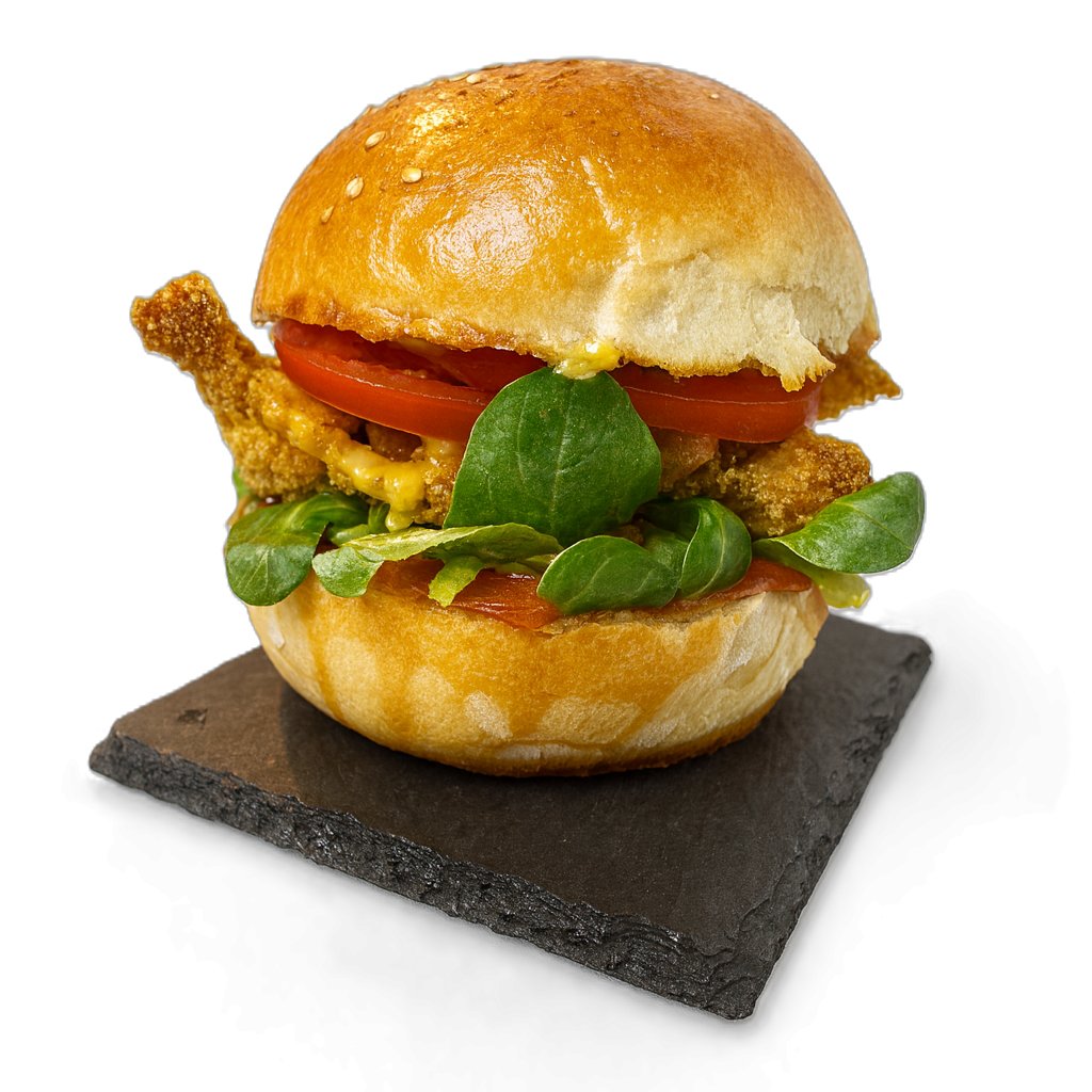 Domácí kuřecí stripsy, rajčatová salsa, salátek, čedar, rajče, čedarová omáčka. To vše v naší domácí bulce.