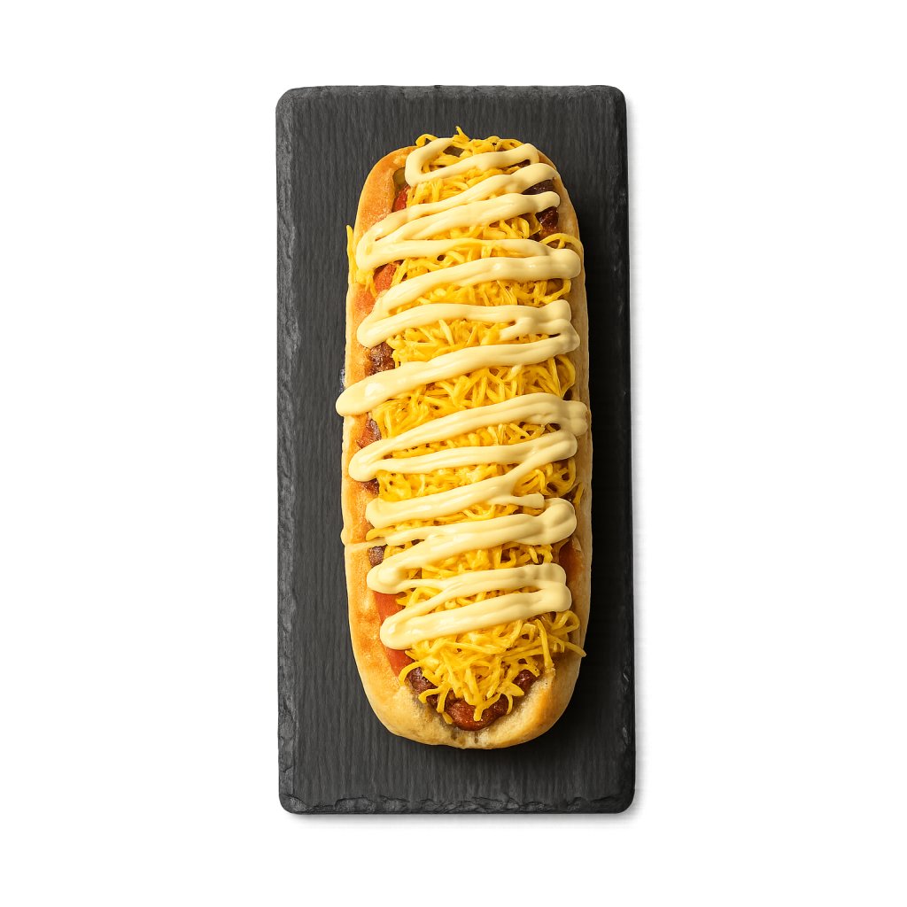 Domácí rohlík, hovězí trhané maso, cibulové chutney, rajče, čedar, rajčatová salsa, medovo-hořčičná omáčka.