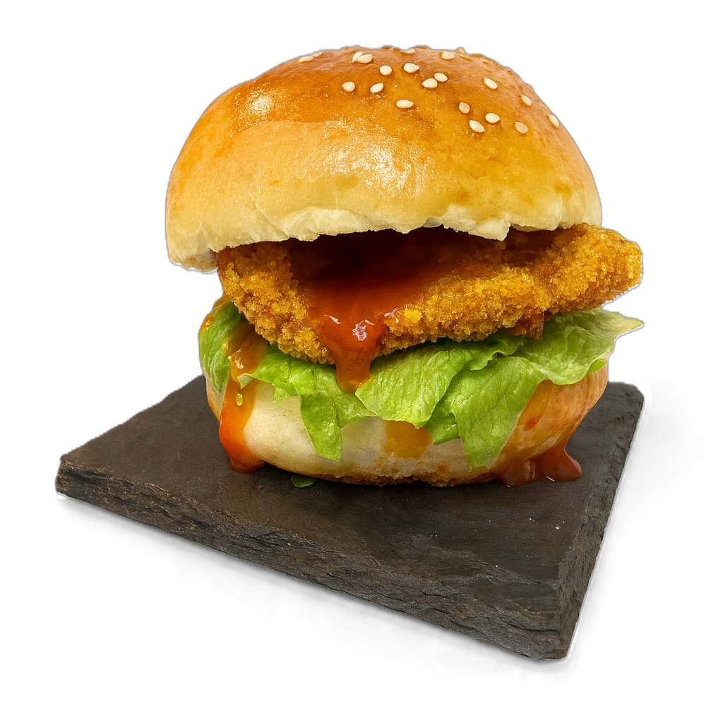 Domácí kuřecí stripsy, sweet chilli omáčka, salátek, rajče a domácí bulka